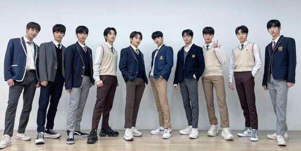 De izquierda a derecha: Hunter, Jinsik, Hyunwoo, Sumin, Minjae, Yujun, Junmin, Yechan, Junghoon & Seeun